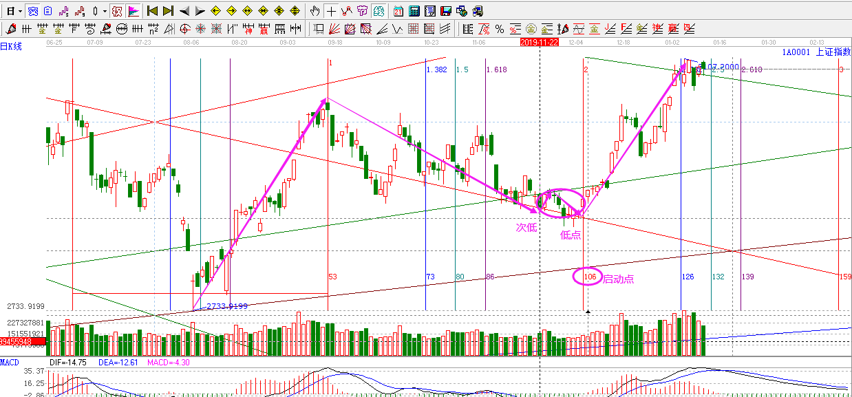 11月11日贏家江恩股票軟件預判走勢分析圖及11月29日分析截圖