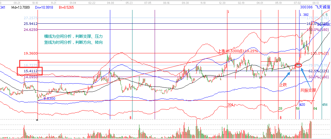 通過對時間的研究,我們可以找到股票變盤的時間,通過空間的研究,我們可以找到股票強勢支撐啟動位置,時間+空間=最佳買入位置