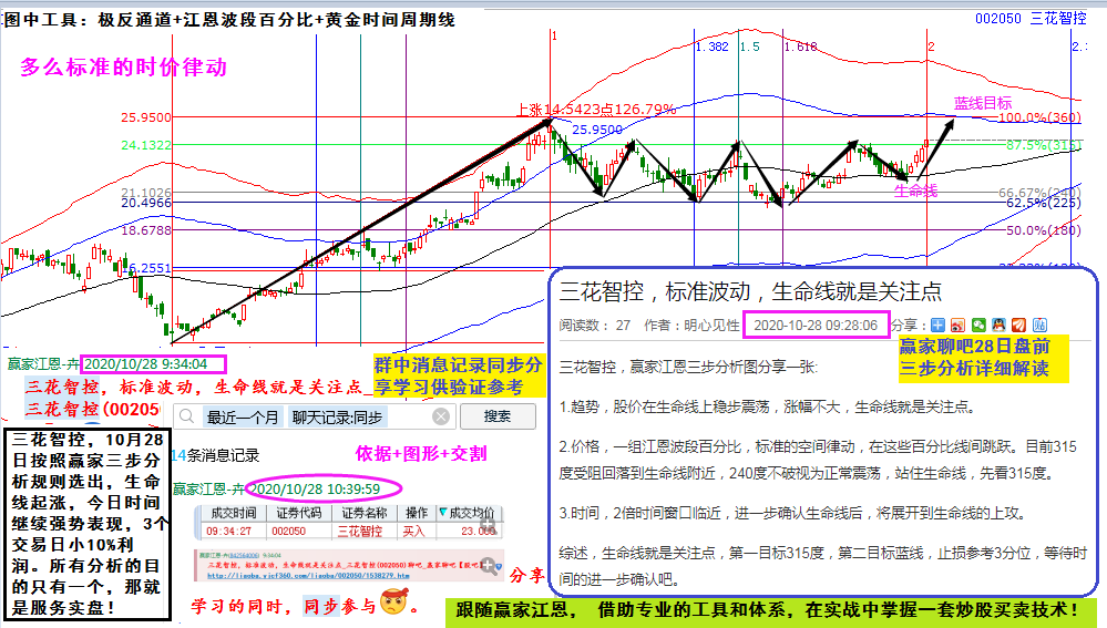 三花智控,10月28日盤前選出,贏家聊吧有詳細的分析圖形及文字解讀;群中同步分享學習及實盤交割,今日時間點更是逆勢拉升直達藍線。3個交易日小10%的收益,你抓住了嗎?所有的技術學習和分析,只有一個目的,那就是服務實盤!跟隨贏家江恩,一起在實戰買賣中,掌握一套適合自己的操盤技術。