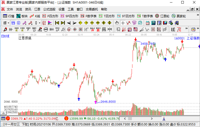那么如何把控到頂部和底部呢?如何在趨勢轉(zhuǎn)折的時(shí)候做出對應(yīng)的操作來拿到最大利潤并且避免下跌所帶來的虧損呢?可以通過波浪理論研究結(jié)構(gòu)找到頂部和底部,也可以通過道氏理論研究趨勢來幫助自己找到相應(yīng)的趨勢拐點(diǎn),甚至是可以通過江恩理論研究時(shí)間周期來找到市場的頂部和底部,但是能做到這些的往往也都是市場中的高手,擁有著豐富的經(jīng)驗(yàn)和專業(yè)技術(shù)。那么對于散戶來說如何判斷市場的頂部和底部呢?除了不斷學(xué)習(xí)專業(yè)知識之外,市場中也有一些智能的軟件來簡單的幫助散戶找到頂?shù)住?/p>