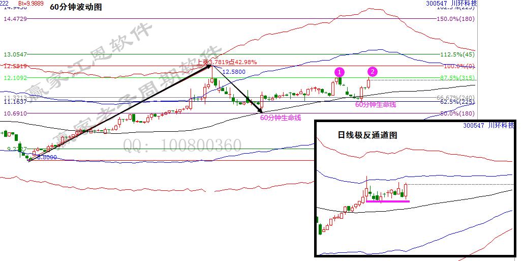 青島中程,讓我們深刻的理解并記住了日線懸空震蕩,在60分鐘周期找短線買賣信號的重要性;那么,現在來看下川環科技,藍線下的懸空震蕩,去看60分鐘的波動,一樣的模式在復制。復制。復制。