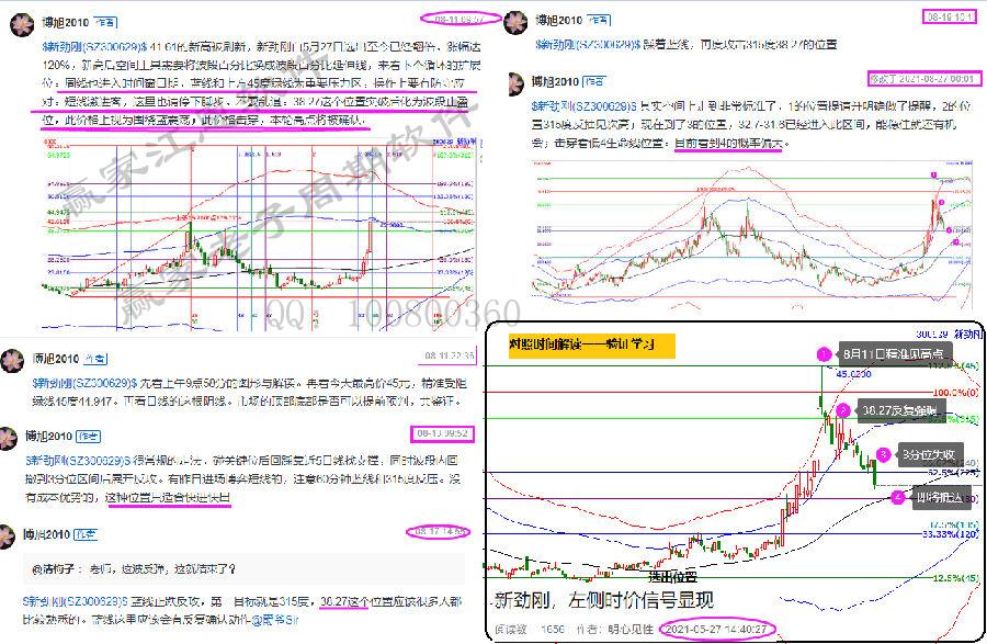 5月27日,按照江恩時價法則,左側底部選出新勁剛。一路跟隨解讀,直至8月11日見45元高點。按照江恩時價法則強調此位置重要性,并給出38.27右側頂部確認位,并再次強調本輪調整的預期空間。所有的分析全部有記錄,有留痕供回顧學習。有心的群友請逐一對應體會,掌握江恩時空波動法則,交易的主動權就在自己手中。當你能用專業的視角完完整整的跟蹤一只標的:從底部選出,到洗盤震蕩,再到快速拉升,直到頂部構建,甚至新循環的開始。你會更加明確你在股市的目的與意義。