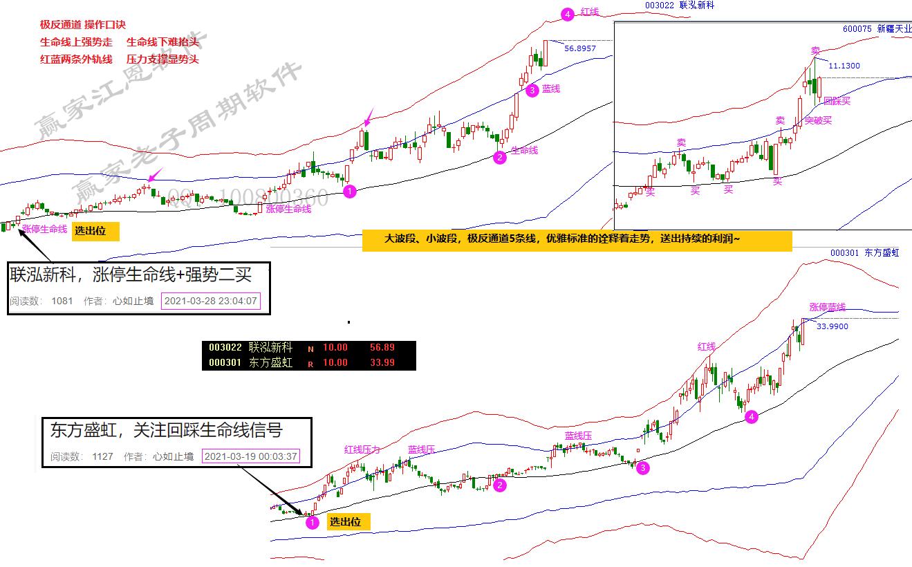 東方盛虹、聯泓新科雙雙漲停。值此之際,再來欣賞極反通道優雅標準的走勢。自3月下旬選出后,持續跟蹤解讀,不論大波段還是小波段,清晰的信號就展示在哪里。懂得贏家規則,這些利潤都和你有關。極反通道,簡單5條線,詮釋波動之美。