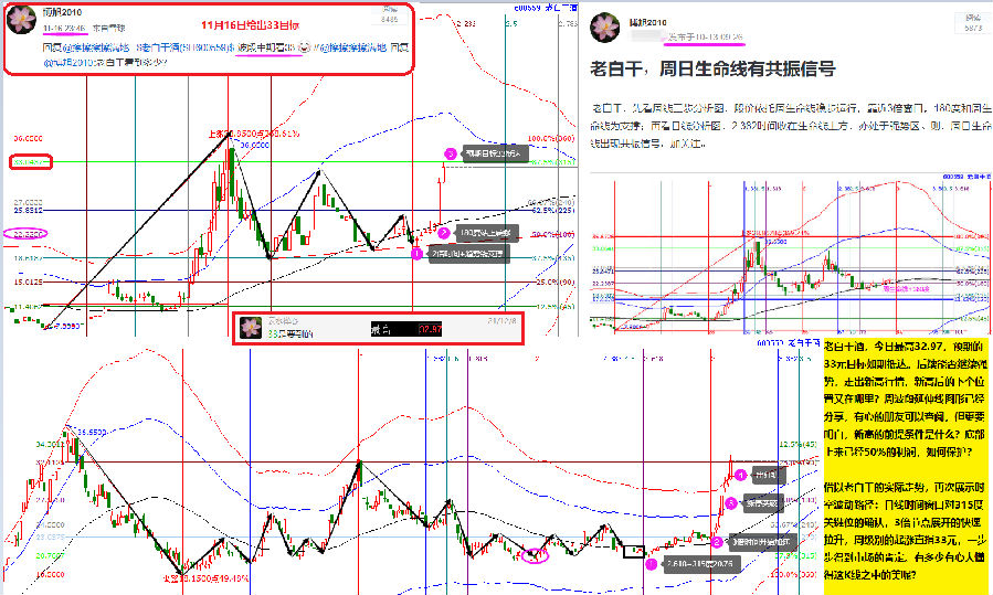 借以老白干的實際走勢,再次展示時空波動路徑:日線時間窗口對315度關鍵位的確認,3倍節點展開的快速拉升,周級別的起漲直指33元,一步步得到市場的肯定。有多少有心人懂得這K線之中的美呢?只想說:越專注越敬畏。
