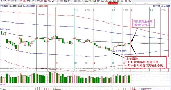 接下來講解下本周操作的一個股票——金證股份(600446),該股1月4日放量長陽突破生命線,趨勢轉強,按照贏家的穩健操作規則,最佳的買點就是等待市場回落生命線附近參與,買入的時機結合時間窗口和價格分析來做。