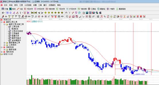 調出工具:單擊或雙擊軟件最左側邊線,可以調出隱藏的工具欄。然后依次是【贏家江恩工具】-【贏家江恩決策工具】-【乾坤K線】