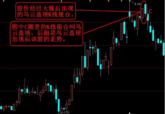 覆蓋線,行情持續幾天揚升之后,隔一天以高盤開出,之后買盤不愿追高,大勢連續下滑,收盤價跌到前一日陽線之內。這是超買后所形成的賣壓表現,獲利了結盤大量拋出之故,將下跌,投資者應及時賣出。