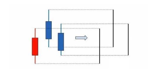 如圖所示,不含包含關系的三根K線,中間一根低點最低 ,高點也最低。