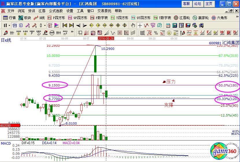 當(dāng)然在股市的操作中,投資者也可以用波段百分比來分析當(dāng)前位置的支撐位和阻力位,從圖中可以看出當(dāng)前位置的支撐是在33.33%線的位置,而壓力是在50%線的位置,也就是1/2的位置,投資者要注意其中的操作風(fēng)險(xiǎn),在下跌的走勢中,選擇反彈的高點(diǎn)進(jìn)行獲利操作。