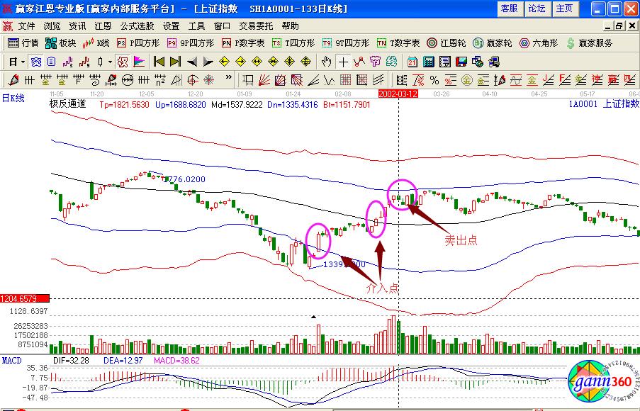當然買入之后就需要注意觀察個股的賣出獲利點,因為股市有漲有跌才是正常的操作規律,所以在股價上漲一波行情之后,要分析其中的賣出點,如圖在向上突破藍色下軌線是一個試探性建倉的點位,在突破生命線進入強勢運行區域是一個不錯的買入點位置,也可以適當的進行加倉操作,之后在股價向上運行沒有突破藍色上軌線,并出現下跌回調的時候,要注意及時的賣出獲利。因為站穩一線看高一線是極反通道使用的基本規則。