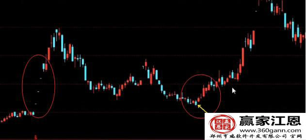 圖例3:第三個實例的個股漲幅是比較大的,第一個漲停板是拉升的大陽線,之后連續跳空拉升5個大陽線的漲停板,在形成階段性的高點之后,進行下跌回調,在股價達到第一個漲停板收盤價的時候,止跌企穩向上拉升,形成一個漲停板,對稱概念股的走勢形成,投資者可以積極的進行買入操作,等等后市的上漲變化。