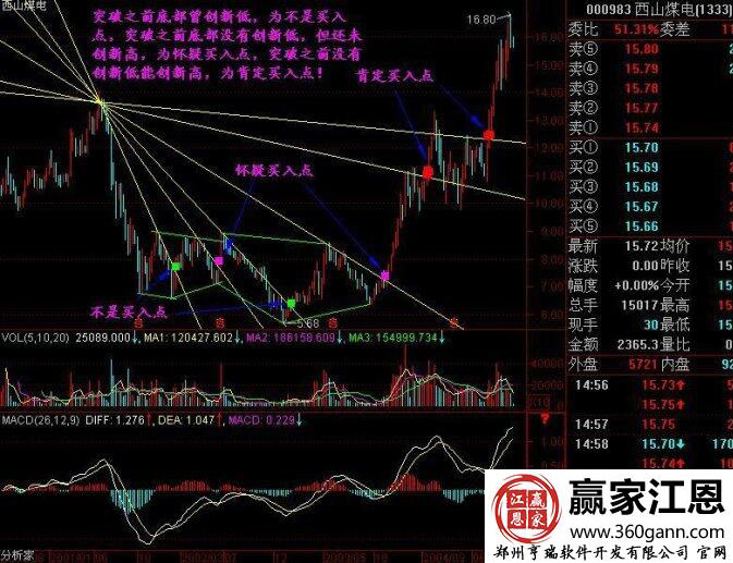 如果股價(jià)在突破扇骨線的時(shí)候,前面的底部沒(méi)有創(chuàng)出新低,但是前面的高點(diǎn)創(chuàng)出了新高,那么這個(gè)點(diǎn)位就是肯定買入點(diǎn),因?yàn)閺内厔?shì)上進(jìn)行分析,股價(jià)已經(jīng)止跌,并創(chuàng)出了新高,上升趨勢(shì)已經(jīng)形成,比較適合激進(jìn)的投資者與穩(wěn)健型投資者進(jìn)行追漲操作。