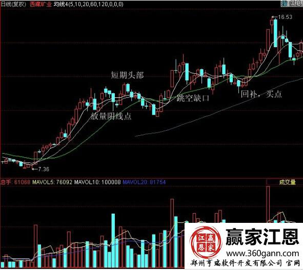 西藏礦業(yè)(000762)從7.36元的低點開始啟動拉升,連續(xù)上漲了多個交易日出現(xiàn)了放出巨量的陰線點,并且形成了短期頭部,之后在高位小幅的橫盤運行,頭部形態(tài)之后必然會出現(xiàn)下跌回調(diào)的走勢形態(tài),股價獲得均線的上漲支撐,出現(xiàn)跳空缺口,拉升幾個點的漲幅,之后回踩前期頭部點位,不破支撐,可以進行加倉買入操作,等待后市的上漲獲利,在出現(xiàn)均線拐頭向下的走勢時,及時的賣出獲利。