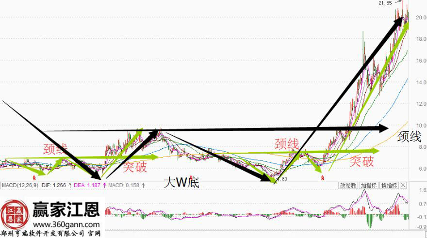 從上圖我們可以看到,奧飛動漫從16元突破雙底之后到26元漲幅也超過50%。顯然是符合上面所計算的方式,介紹幾個判斷雙底的要素: