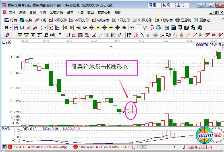 特發(fā)信息(000070):特發(fā)信息在經(jīng)過07年到08年的慘烈下跌后,股價(jià)于2008年11月7日走出了“絕地反擊”,當(dāng)天股價(jià)跳空低開,然后一路震蕩上行,尾盤收于次高點(diǎn)3.06元。