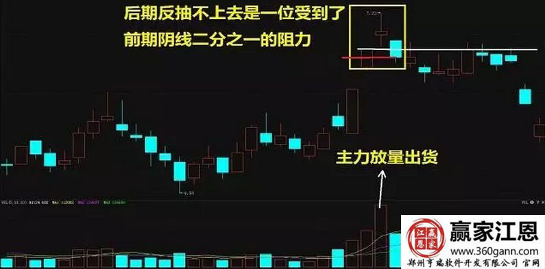 大家在看到黃昏之星出現之火,后期股價的每一次反彈都沒能超過黃昏之星第三根大陰線的二分之一,所以后期的反彈是非常弱的,在這種情況直線,投資者就應該放棄這只股票了。