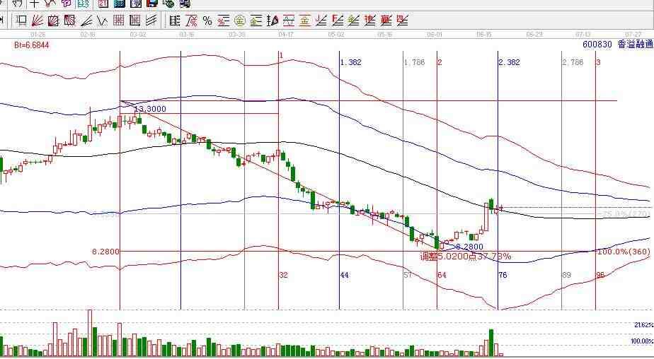 贏家江恩軟件:它是一款證券分析軟件,特色指標是極反通道。這款軟件集道家四象、易學原理、鬼谷子兵法,融入中國幾千年的文明與智慧的精髓,解讀宇宙自總秘,自然法則的循環,結合相應的江恩理論而設計出來的,它可以幫助投資者抓住市場的規律,遵從于市場,順應市場,進而可以從市場中賺錢,如下圖就是帶有極反通道、江恩波段百分比,還有時間周期的運用來分析的香溢融通的走勢圖。