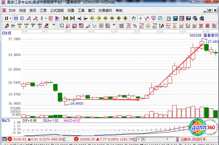 外在條件對股票的影響主要表現(xiàn)在資金上了,所有的資本市場、證券市場,其實(shí)都是資金推動型的市場。沒有錢股價漲不懂,有的時間一個小的波段也很容易是自己推動起來的行情。資金的推動越大,且行情就越加的明顯。那么我們今天就找一只股票來看看,比如說,富春股份。