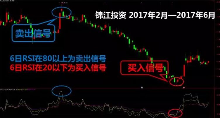 上圖是一個rsi的數值所處位置,所代表的含義,經常我們在運用指標的時候,會遇到一些相關的頂底背離情況,rsi也不例外。rsi的頂背離指的就是rsi值處于高位,創出新高之后,形成了一峰比一峰底的走勢,此時的股價卻形成了一峰比一峰高的走勢,顯然它就是一個非常好的賣出信號。相對應的底背離就是是rsi處于低位,創出新低后,形成了一峰比一峰高的走勢,此時的股價卻形成了一峰比一峰低的走勢。接下來我們來看相應的案例——錦江投資。