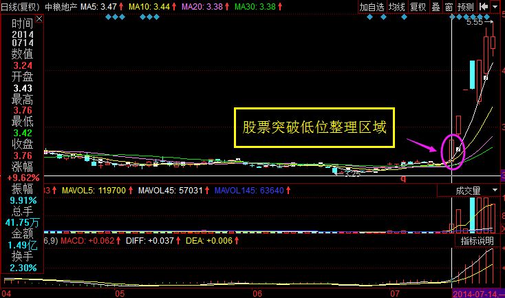 日線圖中,當日的這個漲停板使得其突破了低位整理區,上漲空間已經完全的打開了,在實盤操作中,大家可以積極看多、做多,進行追漲買入。