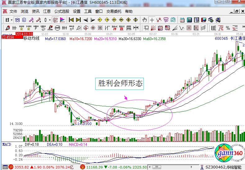 在長(zhǎng)江通信的走勢(shì)中就形成了典型的勝利會(huì)師形態(tài),該形態(tài)說明了市場(chǎng)上由空方強(qiáng)勢(shì)逐漸的變成多空雙方僵持,最終一旦多頭排列完成,那就說明了市場(chǎng)進(jìn)入多方強(qiáng)勢(shì)行情,未來價(jià)格將持續(xù)的上漲。