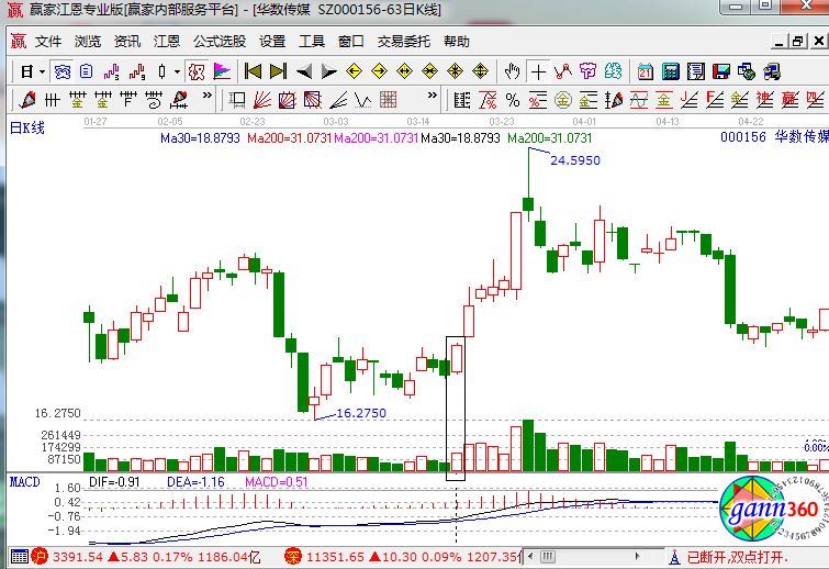 華數傳媒在2016年3月18日走出了第一根大陽線,成交來個能呈現倍量走勢,符合了堆量戰法的必備條件,之后股價線上跳空形成小碎陽的上漲形態,在3月23日向下低開,此時就是很好的買入點位置。賣點的位置大家就可以參考上面的賣點依據進行賣出,當然可以依靠極反通道指標來進行判斷。