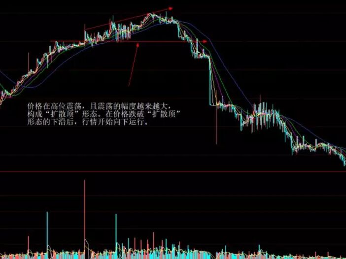 掌握一些頂部形態,是可以讓我們做到很好的逃頂,今天我們在來講一種名為擴散頂的形態,這種形態在股票K線圖中也是經常出現的,它是一種頂部形態,那究竟這個形態的特征是怎么樣?我們今天就來進行相關的介紹。