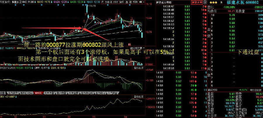 持股時間:當天如果不漲停,第2天沖高走人;當天漲停,第2天,看是否符合上面分析的連續漲停條件,如果不符合,面臨壓力位,沖高走人;如果符合,只要當天調整不破昨日的漲停收盤價,收盤前,形態不形成明顯的調整信號(帶長上影線),即可繼續持有!