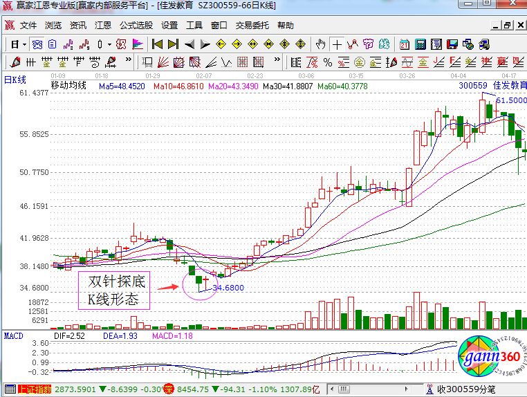 在股市,可謂大魚吃小魚,小魚吃蝦米了。之后該股緩慢的再次爬出上升通道,這樣的“雙針探底”,強悍洗盤,正從另一個側面暗示了該股日后將大牛!該股從這個“雙針探底”之后,走出了單邊上漲!