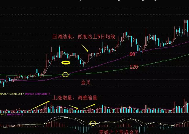 通過這個案例我們可以總結一下老鴨頭形態的操作要點是:1、股價經過長期下跌,筑底后K線持續回升;2、60、120日均線形成金叉,K線上漲伴隨增量;3、K線進行緩慢回調,調整越淺,漲勢越強,調整越深,漲勢越弱;4、K線再度回升,伴隨增量,macd在零線之上形成金叉。