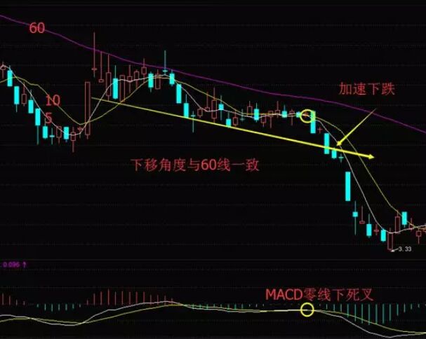 通過上面的走勢圖形,我們可以總結(jié)一下石牛海下沉要點(diǎn)的總結(jié):K線處于下跌趨勢過程中,K線貼近60線,在該線之下運(yùn)行,角度與該線一致,macd零線下死叉,K線出現(xiàn)大陰線,急跌即將開啟。