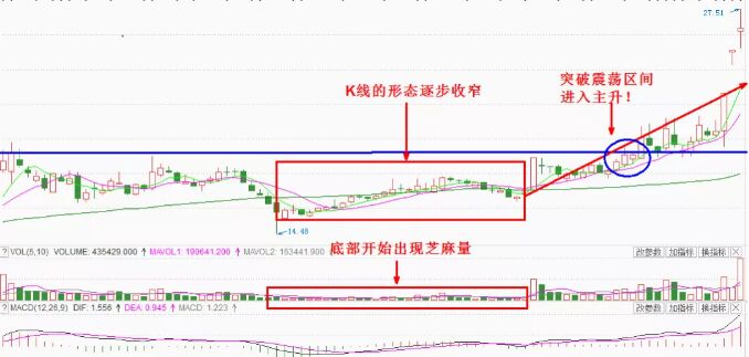 日K線圖同樣是出現(xiàn)小陰小陽或十字星,遠(yuǎn)遠(yuǎn)望去也是點(diǎn)點(diǎn)芝麻,這一帶很可能存在機(jī)會(huì)。在潛收集完成后還有一個(gè)回檔的過程,此時(shí)將弧線量芝麻點(diǎn)的圖形,這個(gè)時(shí)候就是買入股票的好機(jī)會(huì)。