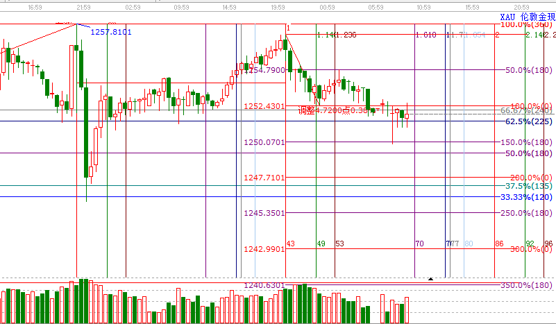 依據贏家江恩工具分析,目前黃金在江恩225度支撐位置運行,價格1251.44點,以及下方強支撐180度1250.07點,此位置不破 短線逢低做多,上方短線阻力位1252.43點,1254.79點,1257.12點,(支撐和阻力可相互轉化,大家和結合位置做決定),今日時間方面,9:30,13:00,14:30,17:30,投資者盤中可密切留意時間窗口,結合盤中位置做策略投資者盤中可密切留意時間窗口,結合盤中位置做策略。【如有疑問,請聯系贏家客服】