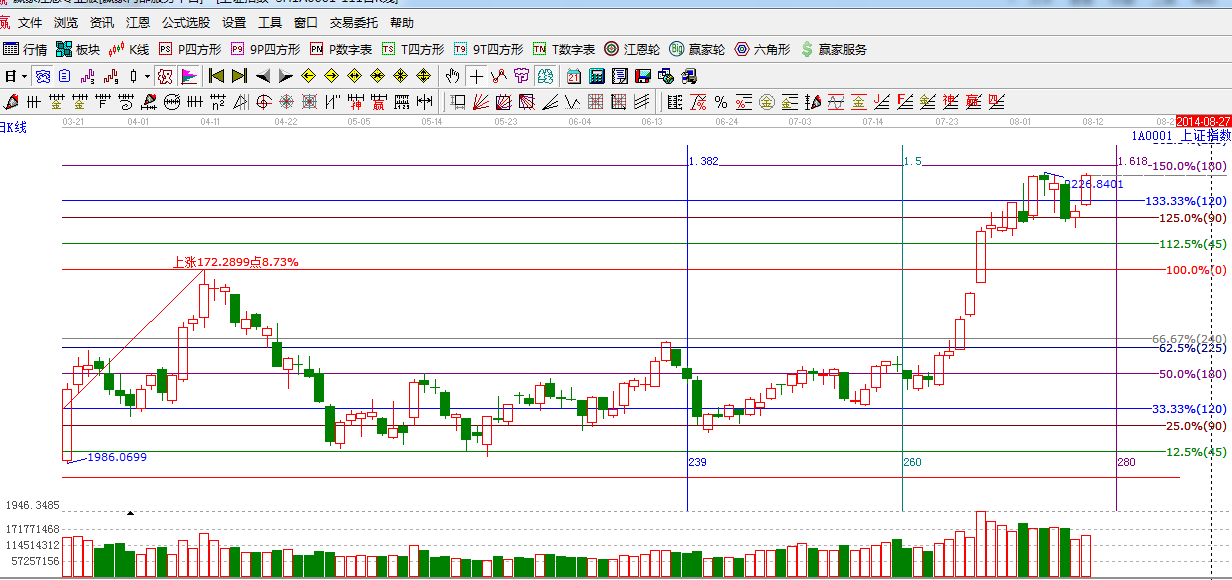 ★依據(jù)贏家江恩系統(tǒng)波段百分比提示:指數(shù)再次強勢上漲,上方阻力180度2232點,225度,2254點。