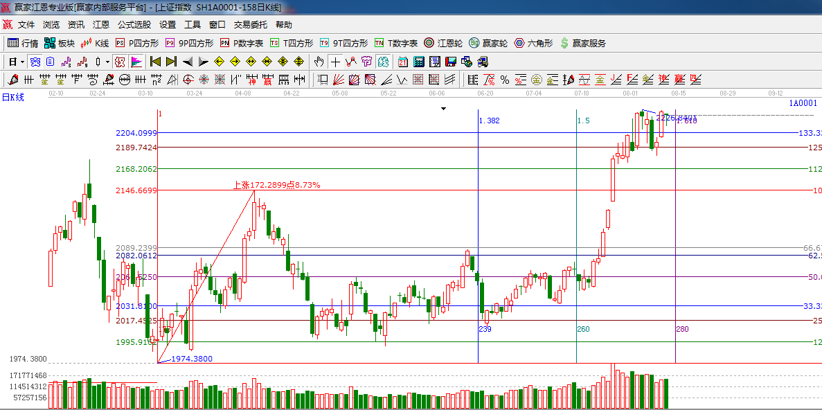 ☆依據贏家江恩系統黃金時間周期線提示:下一時間窗口是8月14日