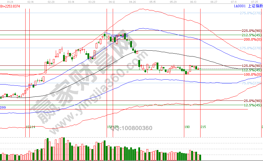 大盤連續(xù)三個交易日收盤在贏家江恩系統(tǒng)工具分析的關(guān)鍵區(qū)2880-2890之間,盤中擊破2880后收復(fù),此區(qū)間是通過江恩價格圖表四方形和60分鐘極反通道生命線判斷得出。指數(shù)自3288點調(diào)整后持續(xù)的橫盤,主要是日K線擊破極反通道生命線進入弱勢區(qū),疊加下旬外部不確定性因素所導(dǎo)致,市場最終會按自身運行規(guī)律而運行,投資者所要做的就是順應(yīng)市場、跟隨市場,并做出相對應(yīng)的策略。從技術(shù)角度出發(fā),關(guān)鍵位不破保持延續(xù)反彈觀點。規(guī)則紀律讓我們在市場中生存,通過工具量化方法與規(guī)則,更能提升有效的判斷,交易不單純指的是買入、賣出,持倉與休息也是不可或缺的組成部分。6月19號盤中壓力是135度2911點、180度2928點,盤中支撐是0度2860、315度2844點。操作策略,指數(shù)處于極反通道弱勢區(qū)域的反彈走勢,繼續(xù)關(guān)注2880-2890區(qū)間得失做持倉決策,整體持倉保持3-5成。