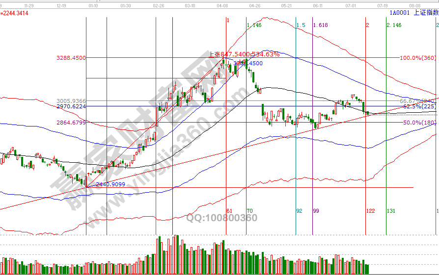 自2號依據贏家江恩系統提示周期共振反壓警示信號,指數已調整6個交易日,在極反通道黑色生命線下震蕩也有2天,從盤面活躍度、情緒、量能等看市場用一個表達就是弱。接下來盤中是否還有機會最投資者最關心的問題,2019年下半年策略已在贏家江恩學員區課程中講述,大勢分析中談論更多的是短期、波段視角解讀,有心的投資者可以連續將7月1號至今的分析結論關聯起來讀,1號3050反壓位分析不適合開新倉,2號分析短周期反壓,5號分析指數再度選擇方向,接下來延續工具分析思路,60分鐘藍色下軌線2894及江恩價格波段百分比2878點是具備短線操作參考價值的位置(9、10號已談過),目前要做的就是等待工具信號的到來與確認,信號規則放在第一位,就目前走勢,做錯要比錯失一次機會更難調節。7月11號盤中壓力是225度2944點、180度2928點,盤中支撐是45度2877點、90度2894點,15號日線時間窗口。操作策略,指數極反通道生命線上下震蕩,2822反彈動作還未明確結束信號,時間窗口附近關注2894、2878點,未來一段時間整體持倉保持3成左右。