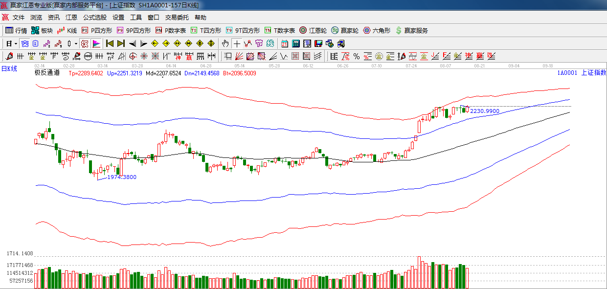 江恩看盤綜述:依據贏家江恩技術工具分析得出:,指數受利好推動展開反彈,但180度2232點阻力憂在,量能較前一交易日萎縮,短期市場仍有震蕩可能,但中期向上趨勢良好。操作上,合理控制倉位,做好高拋低吸。