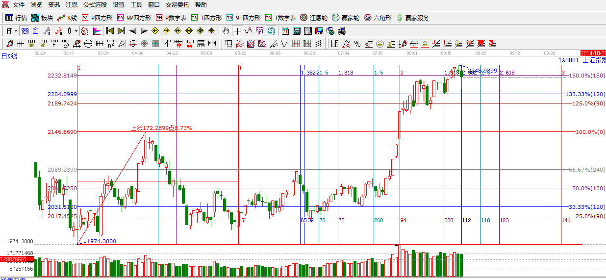江恩看盤綜述:依據贏家江恩技術工具分析得出:8月21日時間窗口,指數如期下跌,終盤吊頸線報收,量能較昨日持平,短期關注下方支撐2204-2189區間,預計大盤短線震蕩走勢將延續,操作上,謹慎為主。