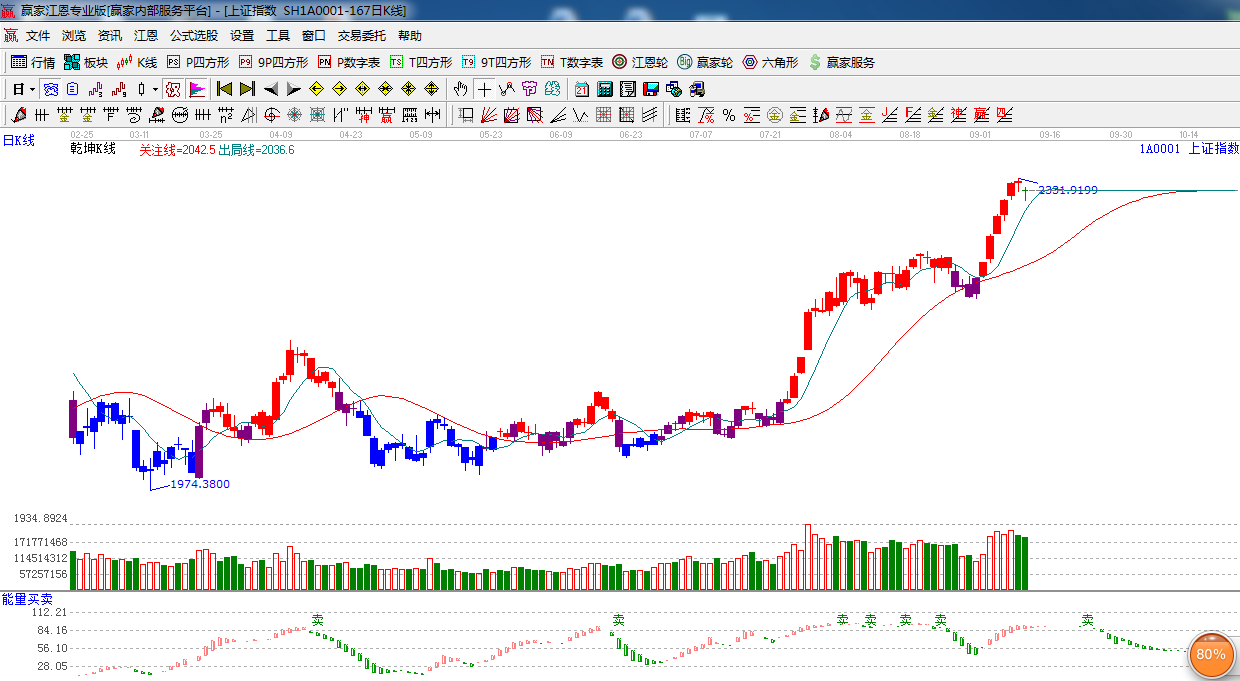 ★依據贏家江恩系統乾坤K線提示:k線處于紅色可操作區域,謹慎看多。