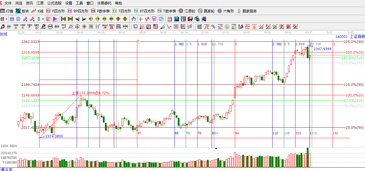 ☆依據(jù)贏家江恩系統(tǒng)黃金時間周期線提示:下一時間窗口是9月18日,9月25日。