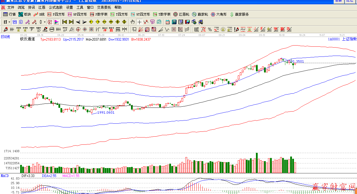 ★依據贏家江恩系統極反通道提示:在藍色外軌線之下,縮量反抽,短期保持謹慎態度。