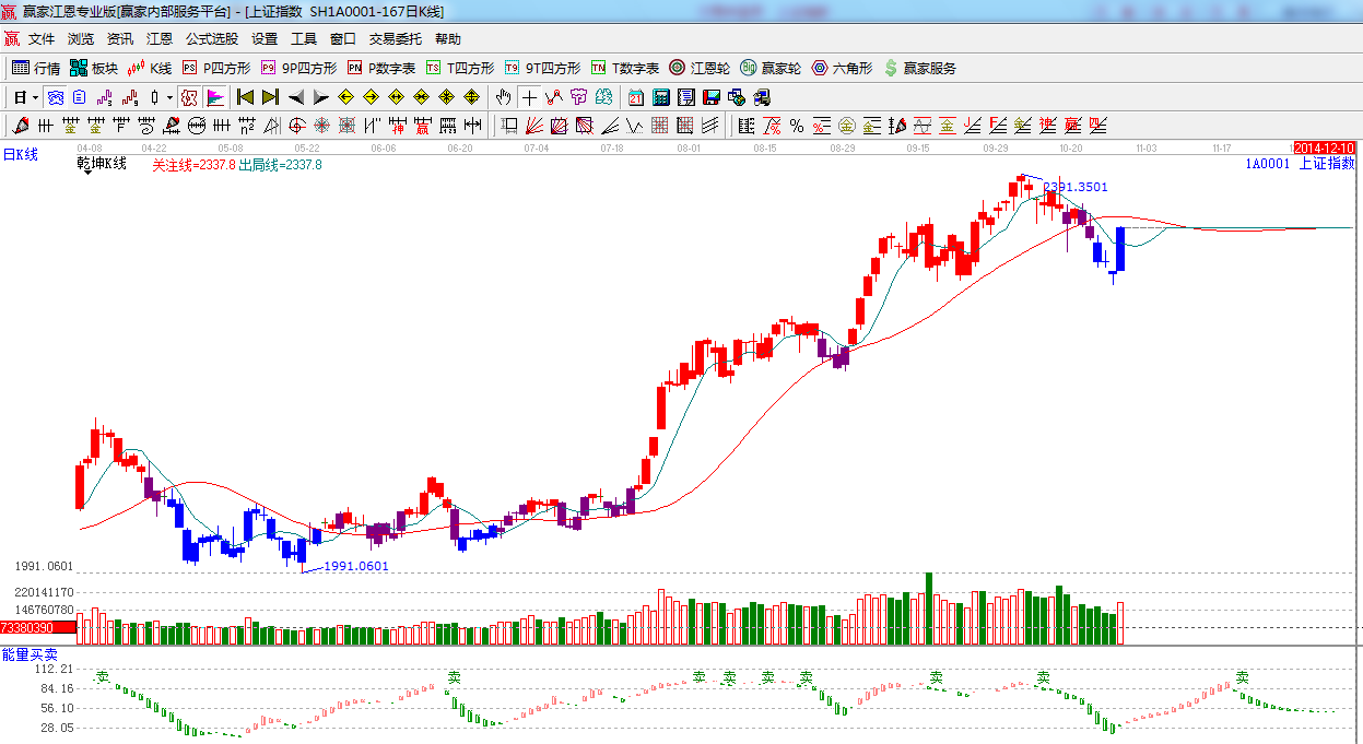 ☆依據(jù)贏家江恩系統(tǒng)能量買賣提示:綠色看空能量柱縮短,短線謹(jǐn)慎看空。