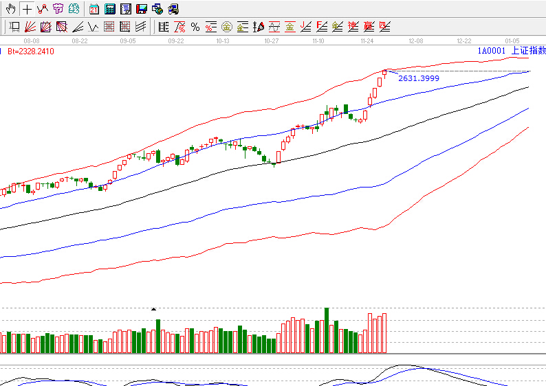 依據贏家江恩技術工具分析得出:滬深兩市繼續保持逼空上行態勢,盤中震蕩加劇,短線走勢有所分歧,按照工具分析,指數以到達極反通道紅色外軌阻力線,預計短期高位震蕩在所難免,操作上,適當控制倉位,謹慎對待。