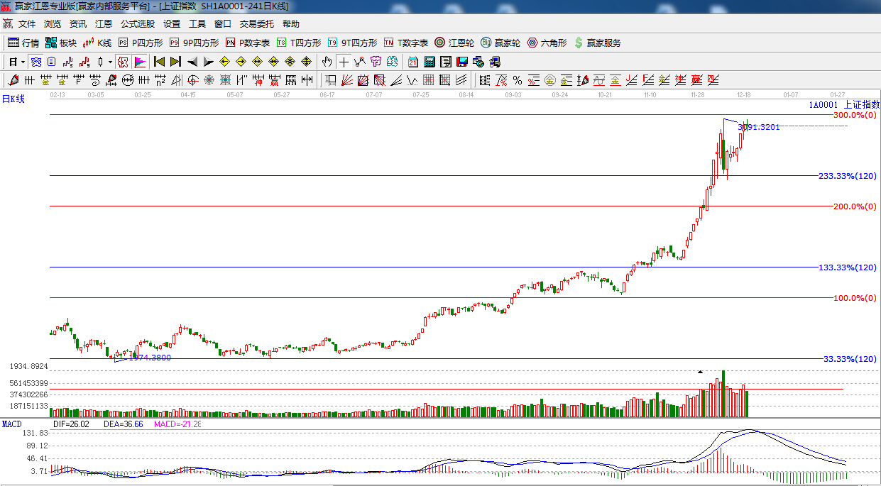 江恩看盤綜述:依據贏家江恩技術工具分析得出:周四指數在前期提到的阻力點再次引起震蕩,量能明顯萎縮,周五股指交割加上6只新股申購,增添了很 多不確定因素,券商、銀行暫告一段落,其他板塊能否撐起盤面,所以目前能否創出新高的關鍵在于量 能的支持,市場雖長期向好,但不可忽略短期振蕩休整動作,操作上,謹慎者觀望兩天,激進者合理控 制倉位 .