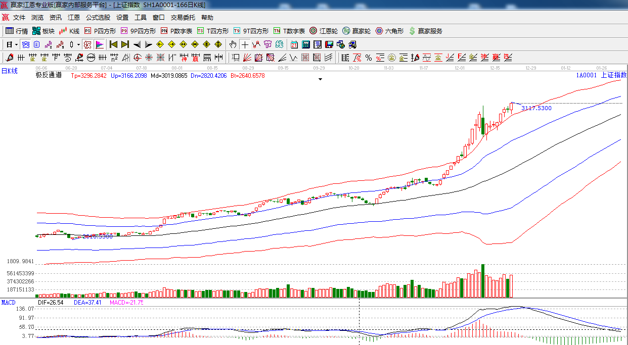 江恩看盤綜述:依據(jù)贏家江恩技術(shù)工具分析得出:近期盤面上,繼券商、保險(xiǎn)等金融類藍(lán)籌股的強(qiáng)勢(shì)表現(xiàn)后,“中字頭”個(gè)股持續(xù)掀起漲停潮,成為市場(chǎng)的中流砥柱,短期仍將延續(xù)強(qiáng)勢(shì)格局,本周如量能持續(xù)指數(shù)站穩(wěn)3100點(diǎn),后期目標(biāo)將是江恩120度3251點(diǎn)附近,近期難度大,特別是盤中的震蕩,建議投資者合理控制倉位。