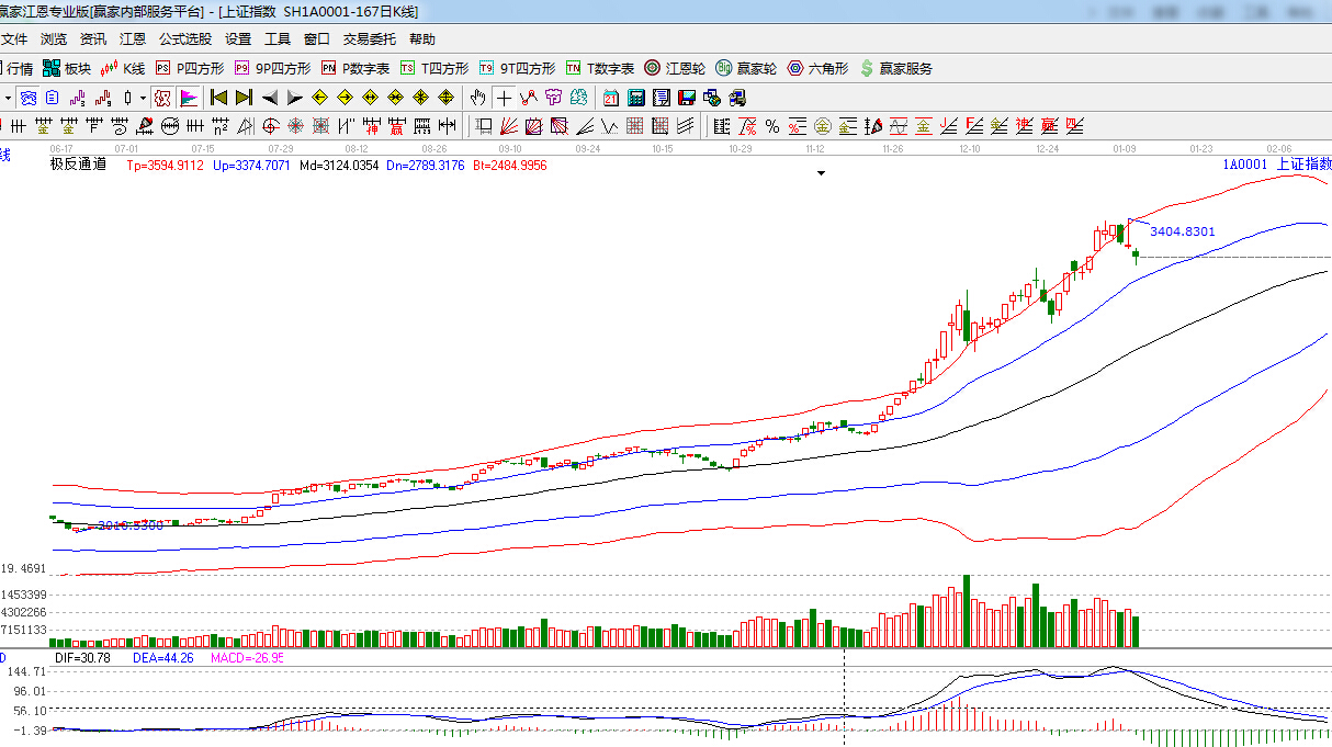 盤面上,醫療服務、互聯網金融、充電樁、鋰電池、云計算等板塊漲幅靠前,航運、濱海新區、工程建設等板塊跌幅領先,全天有近30只非ST股漲停,跌停個股3只、目前金融股嚴重分化,題材股活躍,滬指回探江恩90度支撐3188點,此位置不破,短期高位震蕩格局有望延續。但整體大勢依舊向好,操作上,重個股為主。