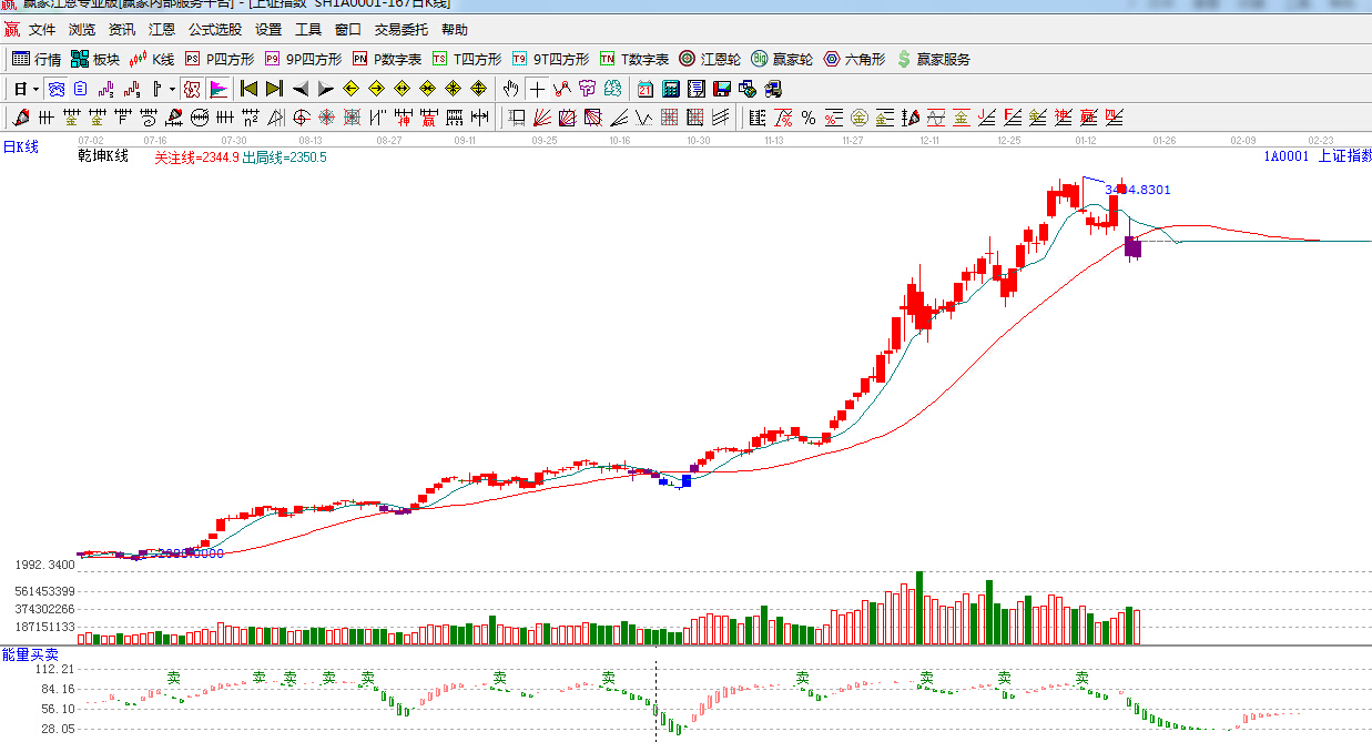 ☆依據贏家江恩理論系統乾坤K線提示:紫色警示k線,反彈未能收復紅色關注線,短期謹慎為主。