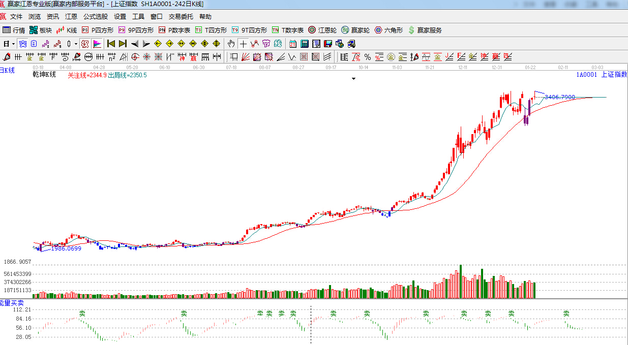 盤面上,券商,保險,房地產強勢,次新股繼續強勢,國產軟件、智慧城市、互聯網、交運設備等板塊跌幅領先,全天有40只漲停,本周在周一大幅下跌后在江恩0度附近迅速企穩反彈,而且周五盤中再次創出本輪新高,經過短線震蕩后,短期或將有更猛烈上行,密切留意周一前一小時盤面變化,后期整體牛市格局不改。
