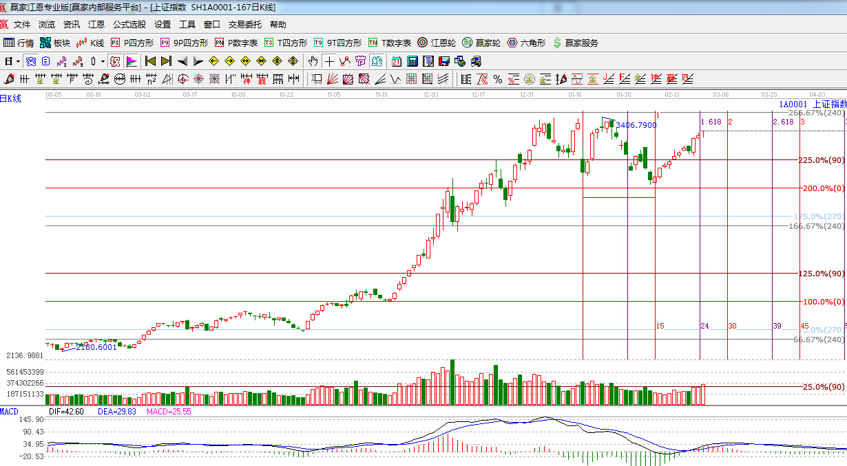江恩看盤綜述:依據贏家江恩技術工具分析得出:周一早盤兩市高開回落震蕩整理,午后小幅上揚,終盤T字線報收,目前短線面臨前高3406點阻力,而且目前又處于兩會窗口期,短線保持一份謹慎,操作上,建議投資者避免追漲,適當把握盤中調整機會,逢低布局政策紅利股。